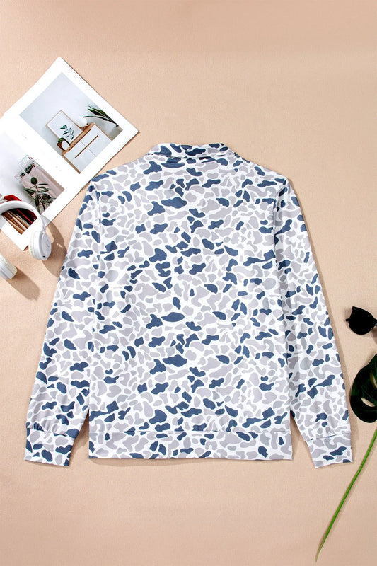 Multicolour Plus Camouflage Print Quarter Zip Kangaroo Pocket Pullover Sweatshirt
