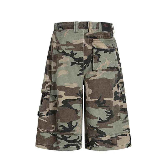 Patch hole camouflage cropped pants for men