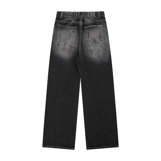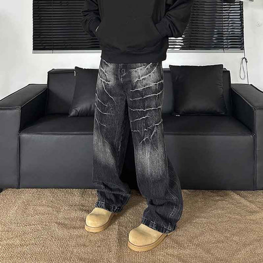 Washed Straight Jeans Men Loose Slimming Design Trousers