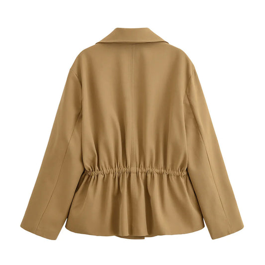White Crinkled Texture Lantern Sleeve Button Down Loose Shirt