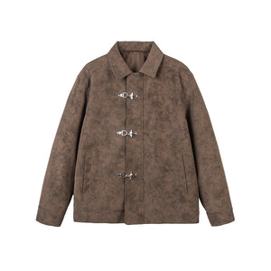 Distressed Metal Plane Buckle Loose Versatile PU Leather Jacket