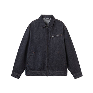 Turn-Down Collar Denim Jacket for Men Loose Workwear Style Trendy Jacket